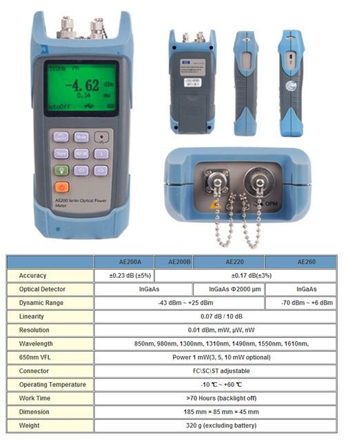 مشخصات پاورمتر فیبر نوری دیوایزر AE260 :